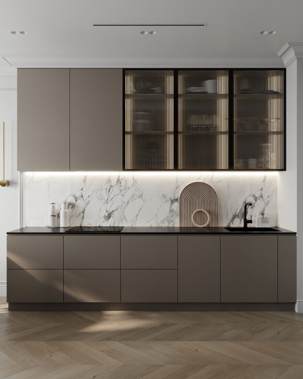 Фасады: АГТ Столешница: Искусственный камень Фурнитура: Samet Ручки: Gola Стоимость: от 287 000 ₽*